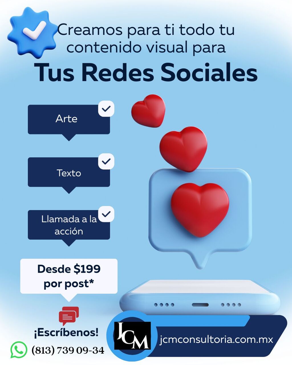 En JCM Consultoría te ayudamos a dar vida a tu marca con arte diseñado especialmente para redes sociales, cuidando cada detalle para que tu mensaje conecte con tu audiencia.